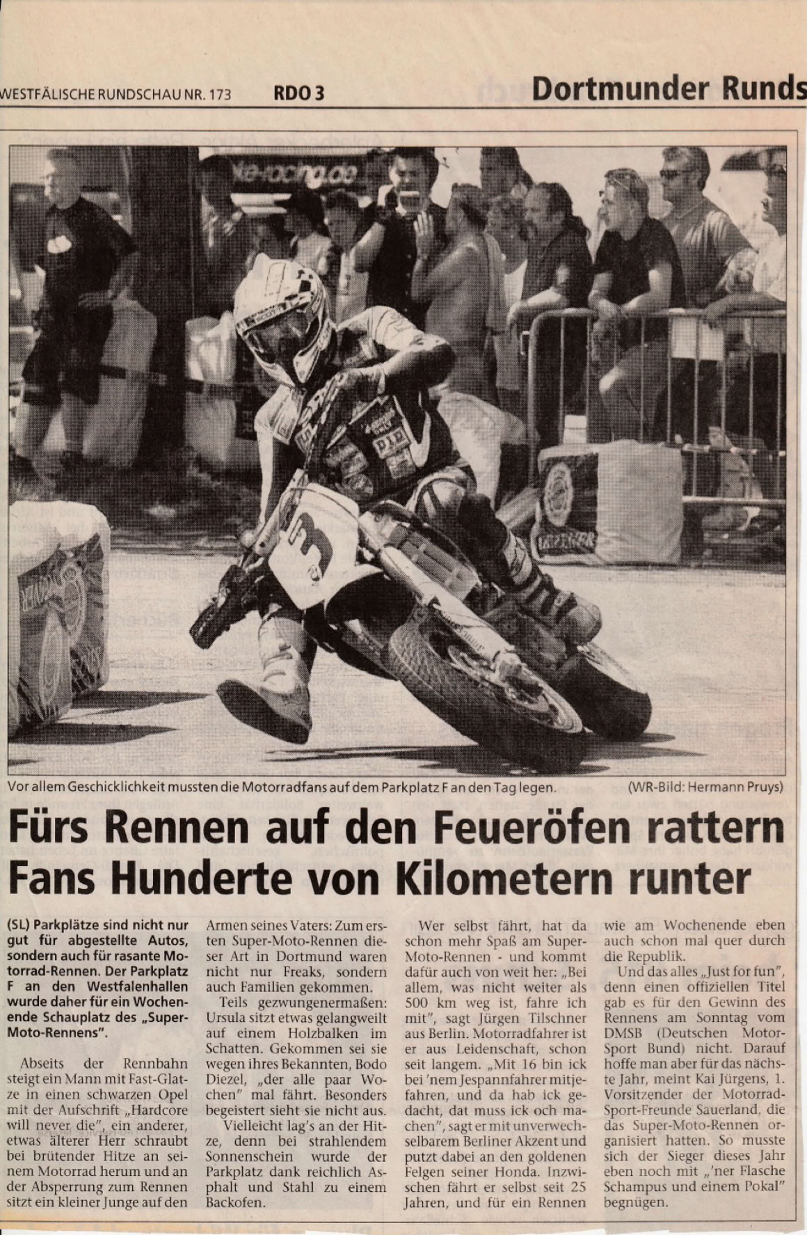 Zusammen mit dem Dortmunder MC konnten wir in Dortmund an der Westfalenhalle am 27./28. Juli 2002 zum ersten Mal eine SuperMoto-Veranstaltung aus dem Boden stampfen.