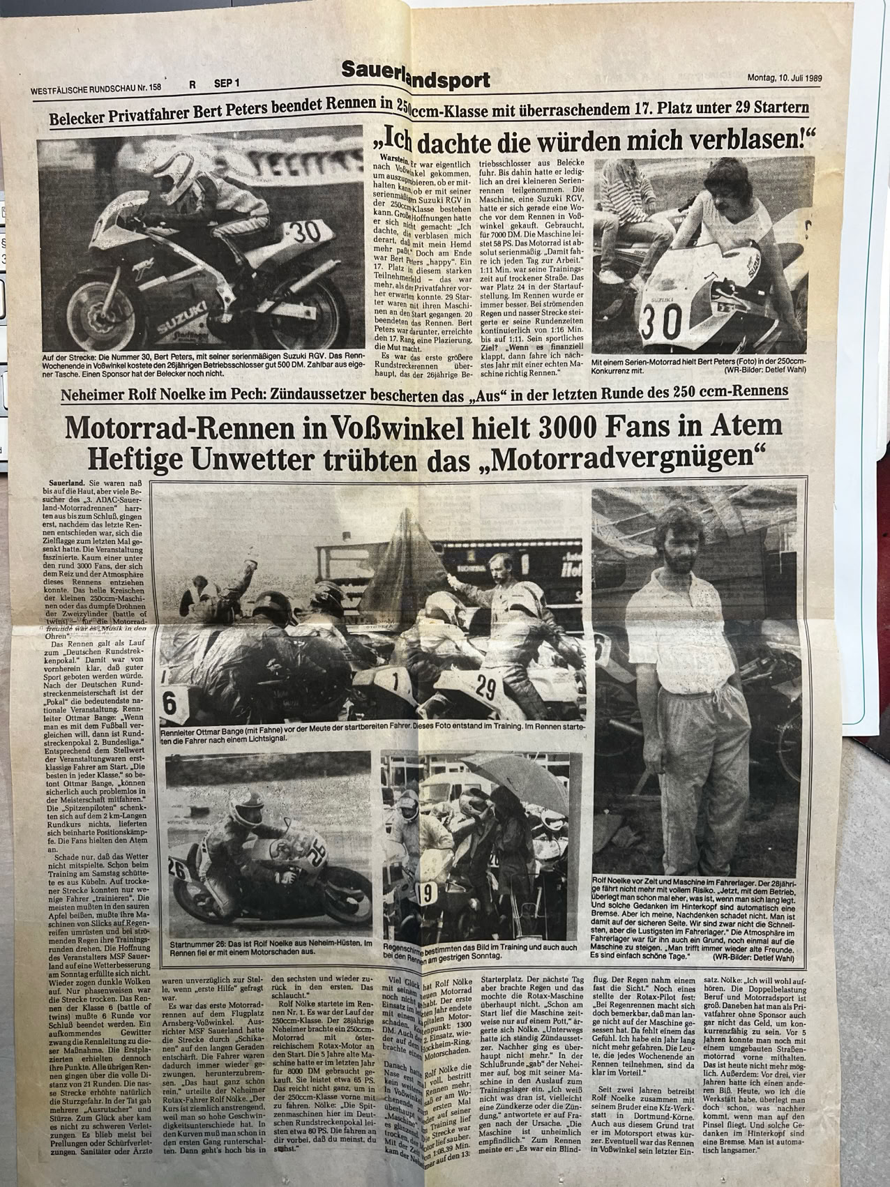 Im Juli 1989 fand zum ersten Mal auf dem Flugplatz Arnsberg Voßwinkel unser Sauerland Motorrad-Rennen statt.